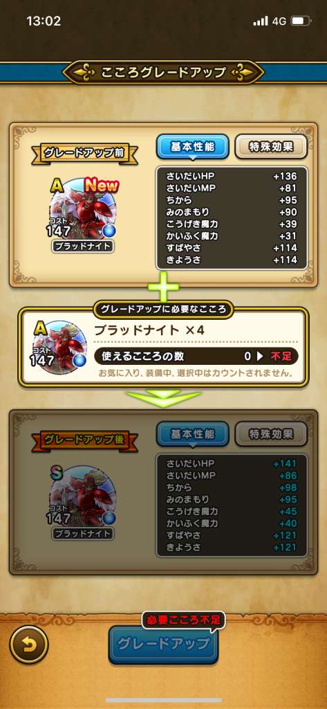 ブラッドナイトのこころSの性能と必要個数|たまにいきなりピオラ
