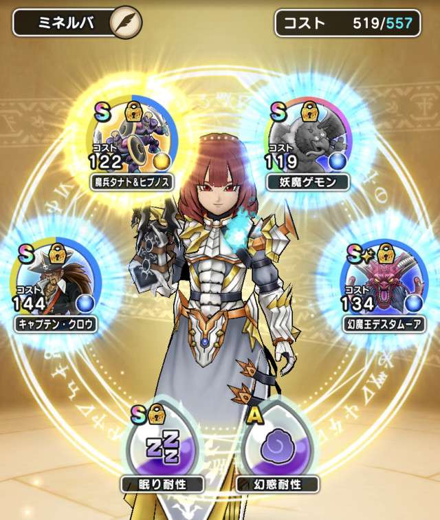 | こころ最大コスト+4 スキルの斬撃・体技ダメージ+7% デイン属性斬撃・体技ダメージ+10% ジバリア属性斬撃・体技ダメージ+6% バギ属性斬撃・体技ダメージ+3% 転び耐性+10% ふきとばし耐性+10% | ||||
