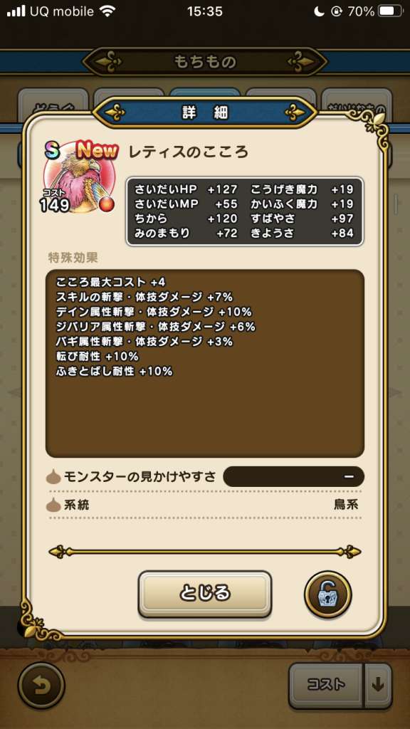 こころ、心珠、装備を鳥対応に調整すれば、もうちょい楽になるな