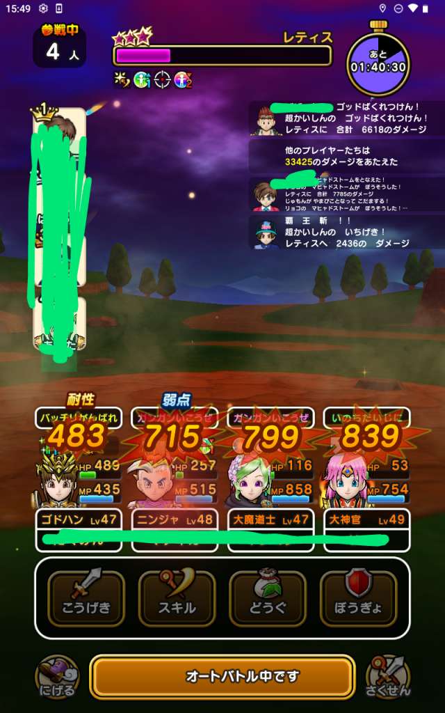 予兆からの全体攻撃がめちゃ痛い。耐性なしで800くらった。