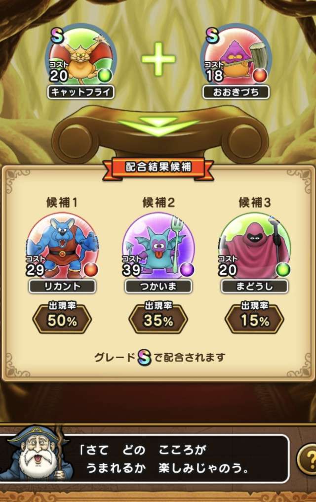 グレードの組み合わせや順番を入れ替えても、配合結果は変化なし