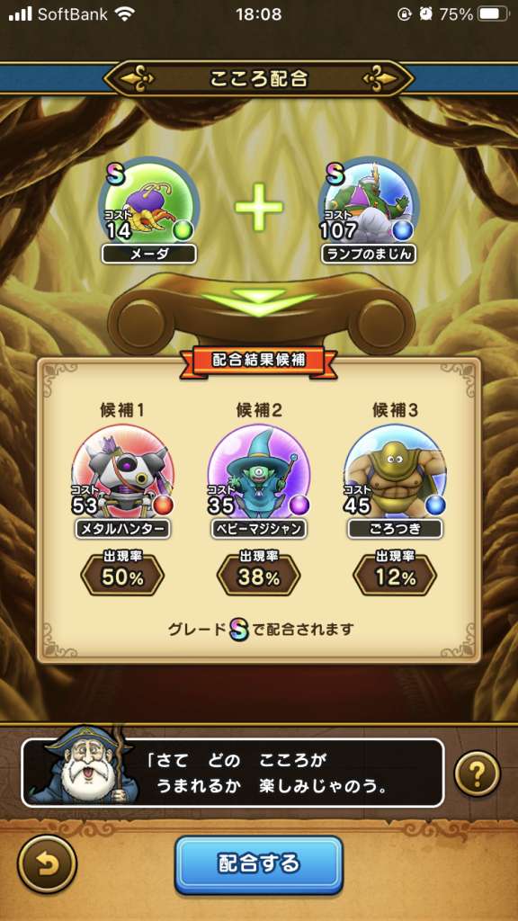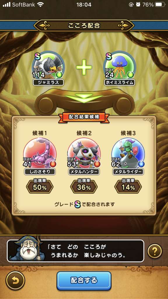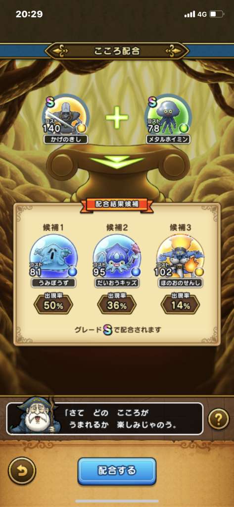 DQMコラボ開催記念で「こころ配合」というイベント機能が実施。モンスターズではお馴染みのやりこみ要素です。