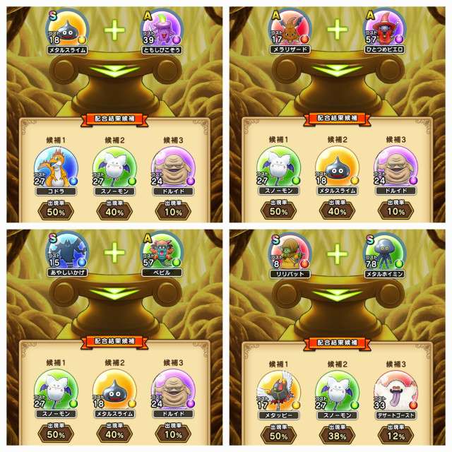 メタルスライムの組み合わせ探してますが、これより手に入れやすいモンスターでできないものでしょうか?