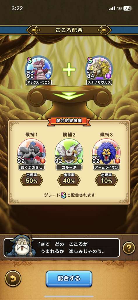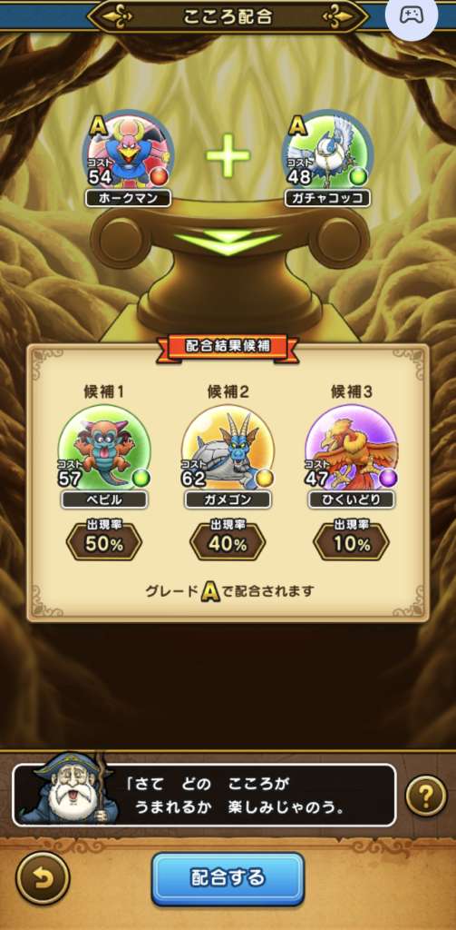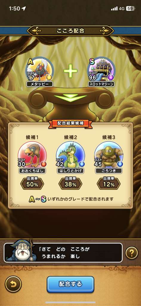 DQMコラボ開催記念で「こころ配合」というイベント機能が実施。モンスターズではお馴染みのやりこみ要素です。