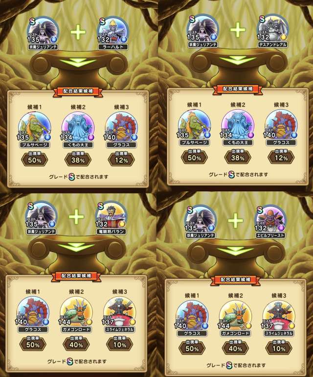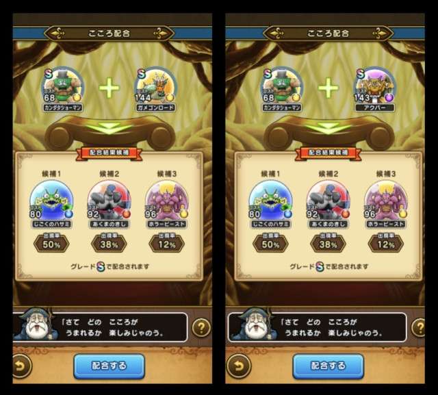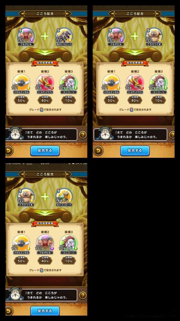 グレードの組み合わせや順番を入れ替えても、配合結果は変化なし