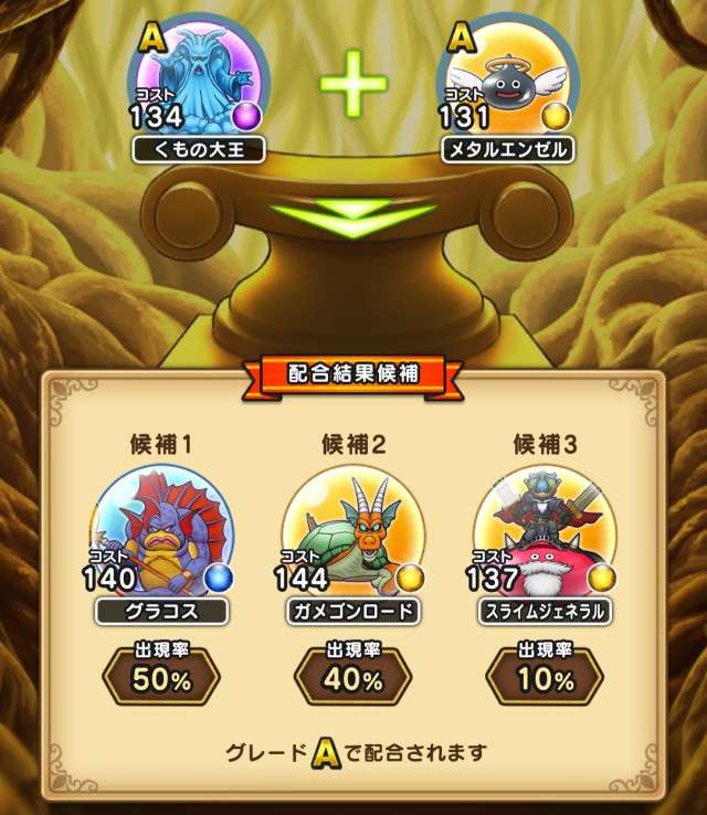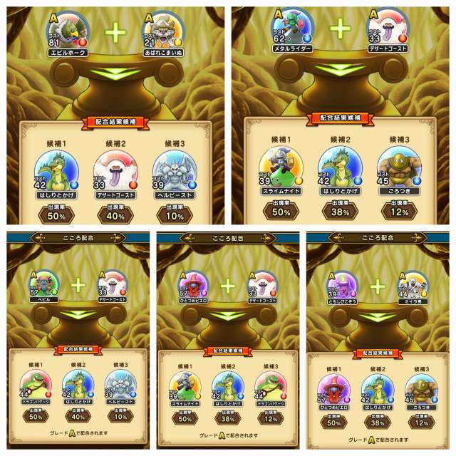 グレードの組み合わせや順番を入れ替えても、配合結果は変化なし