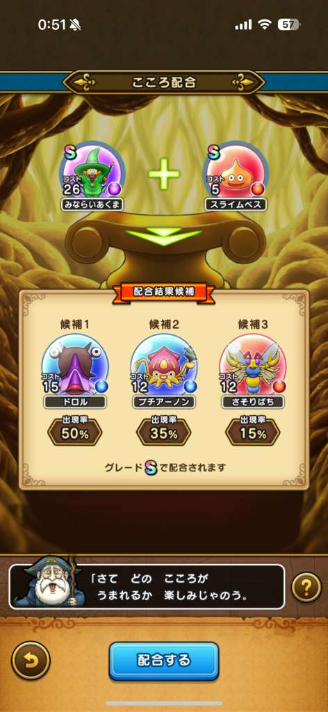 モンスターのこころ配合も別に良いのですが、同じ属性・ランクの白黒心珠を合成させて欲しい。