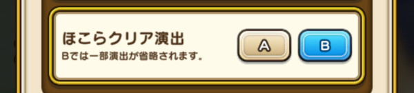 アプリをアプデ→メニュー→その他設定→設定→ゲーム→最下部のほこらクリア演出をBに変更で演出が削除されます。