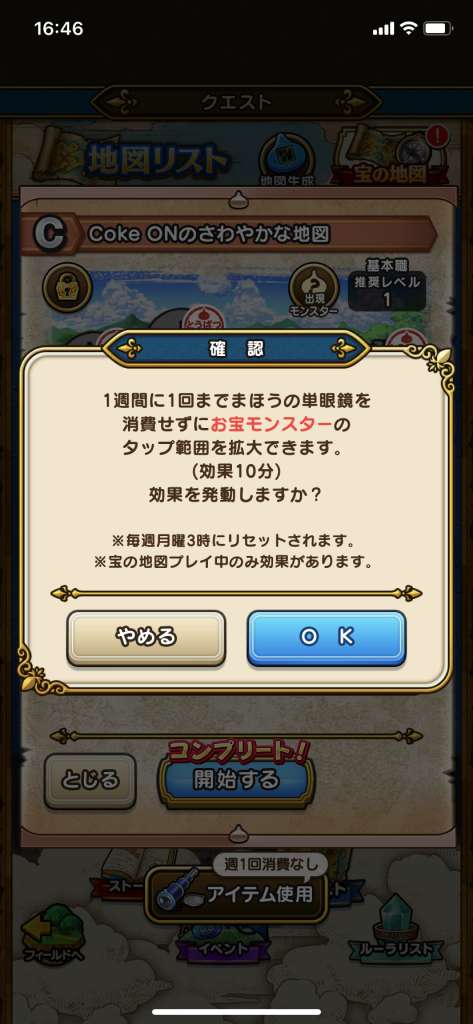 まほうの単眼鏡は、使用後に宝の地図の「お宝モンスター」をより遠くからタップできるようになるアイテムです。