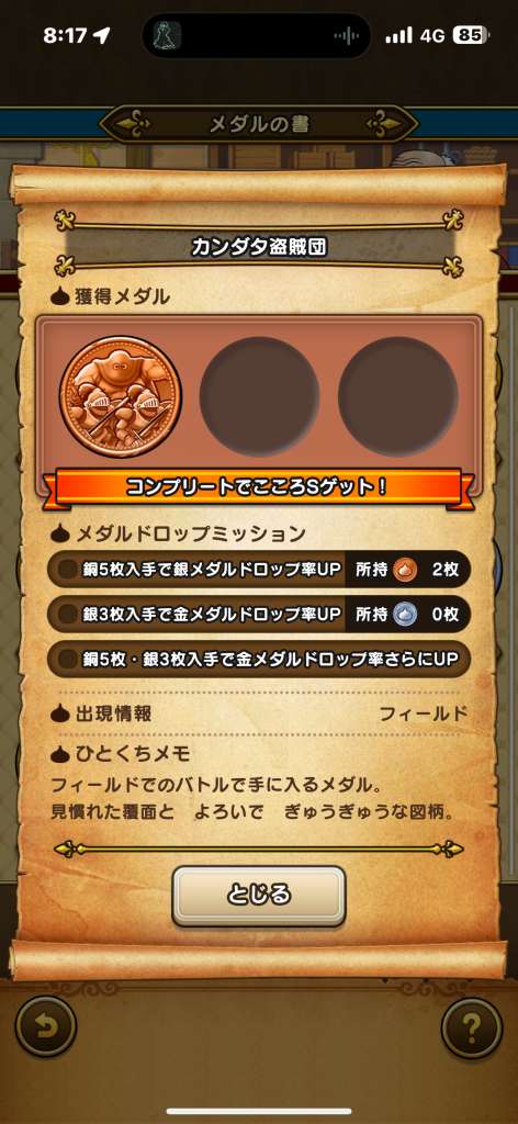 | 183個 | 称号「愛蔵版メダルの書」×1 |