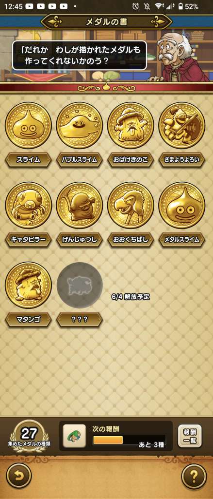 ![]() メタキンコイン | ![]() 冒険のかけら | ![]() ゾーマの心珠 | ![]() ラーミアの心珠 | ||||||||||||||||||||||||||||||||||||||||