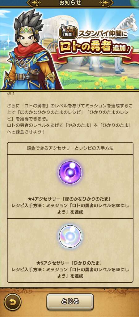 【復刻時】ミッション「ロトの勇者のレベルを30にしよう」を達成