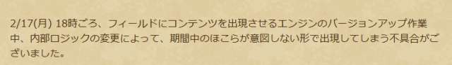 フィールドにコンテンツを出現させるエンジンのバージョンアップ作業中の不具合だったようです。ただ、意図しない形で出現したほこらのクリアやルーラ登録の状況をリセットするのは困難なようで、ほこらランクの入賞者の定員人数を調整する対応をするとのことです。