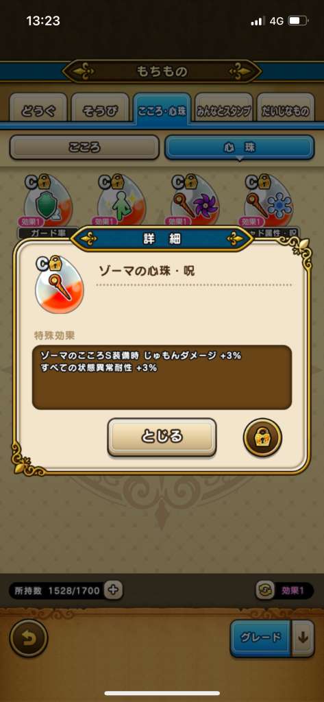ゲットした「ゾーマの心珠ボックス」は「もちもの」から開封ができます。