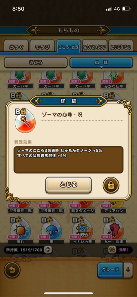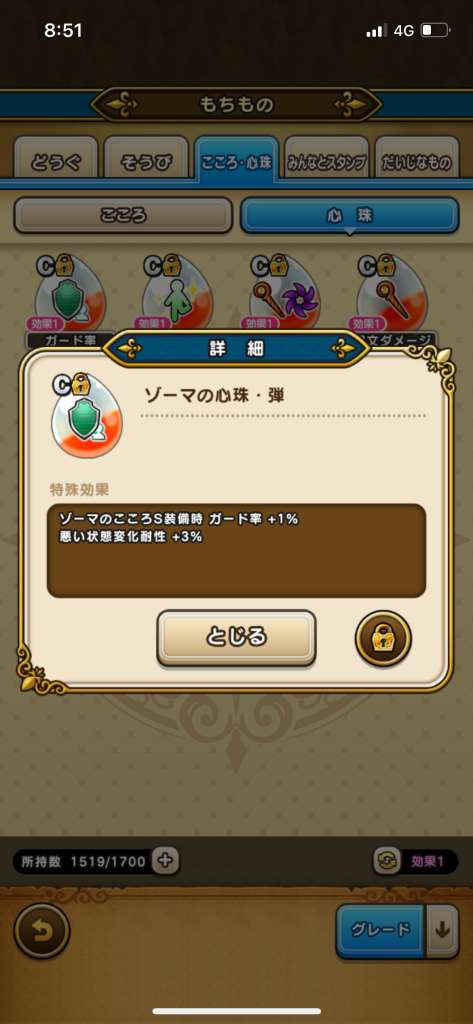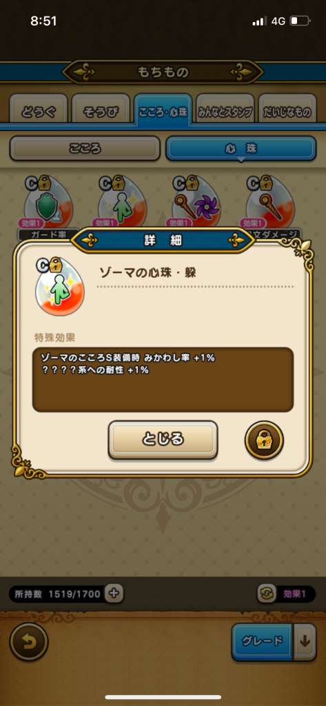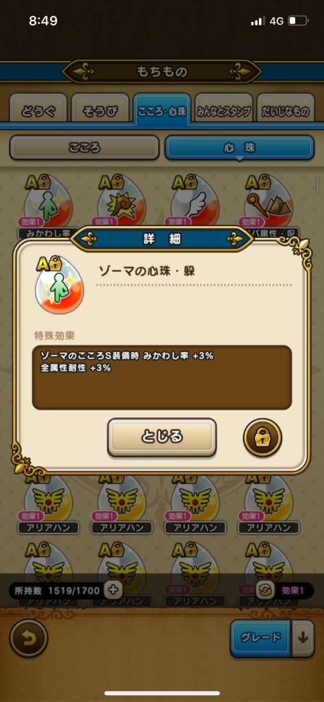 ゲットした「ゾーマの心珠ボックス」は「もちもの」から開封ができます。