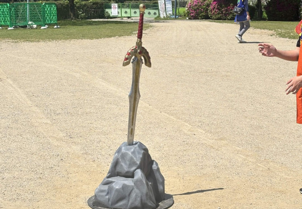「ロトの伝説のアイテムをさがせ!」のロトのしるしのところは、池側ではなく通路側にもAR読み取り絵が掲示されています。
