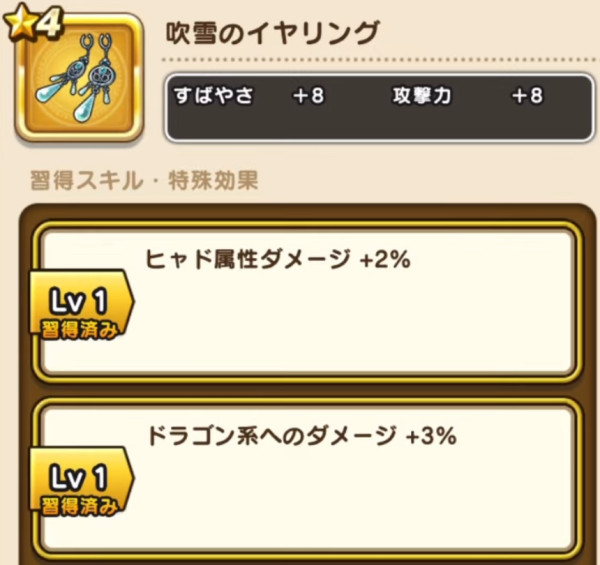 1スキルに2属性付いているタイプのスキルです。単体にヒャドorドルマ斬撃900%ダメージ(まれに直撃)となります。たまに恐怖Lv3も付与可能。