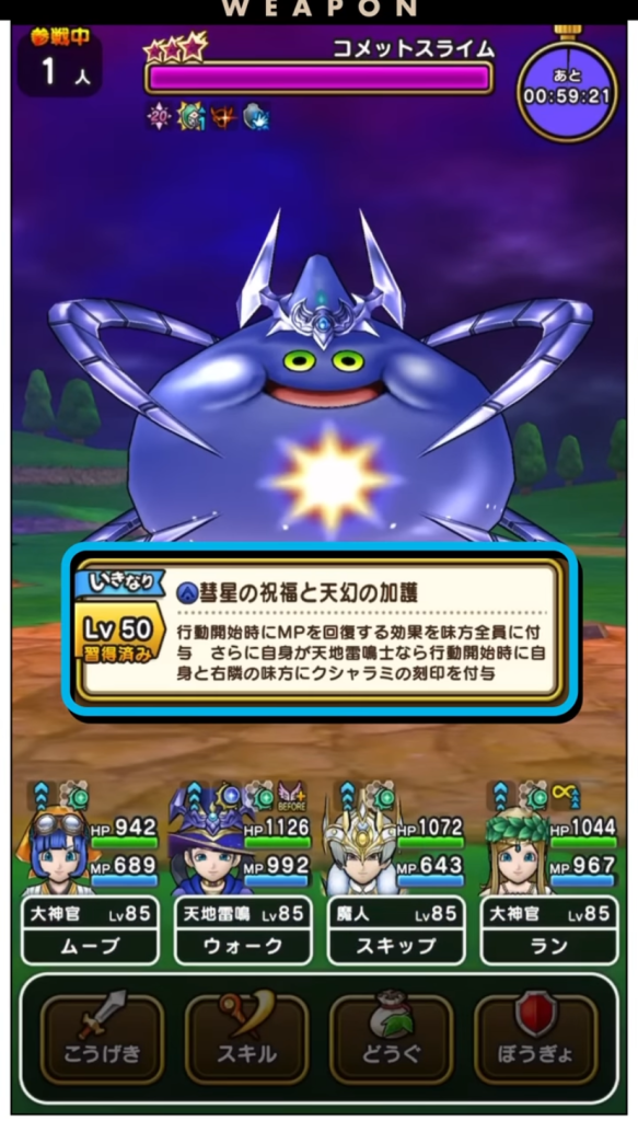 新ガチャ情報のサブ2:闘志注入は「自身に」ではなく「味方全体に」効果のあるスキルです