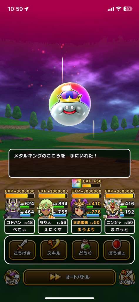 メタルキングの心珠ボックスが手に入ります。中身は以下からランダム、グレードはSランクのみ。