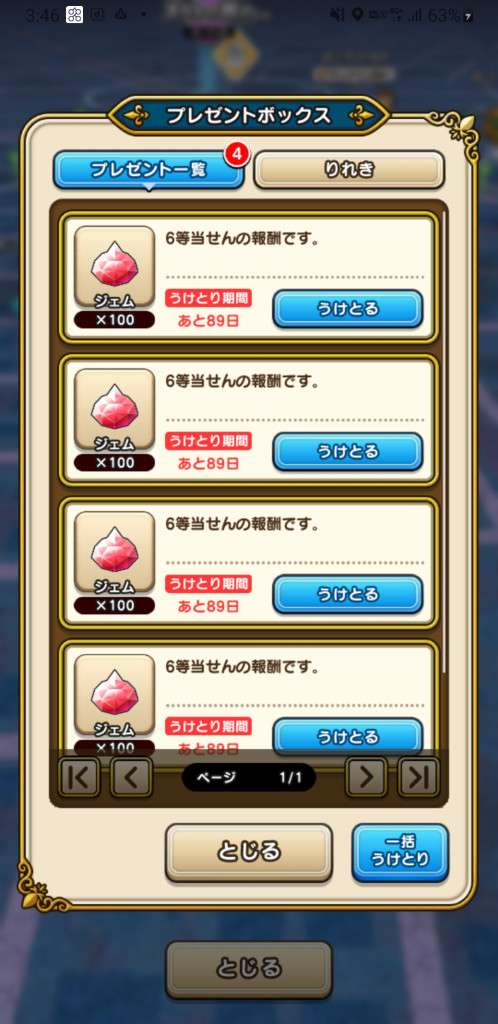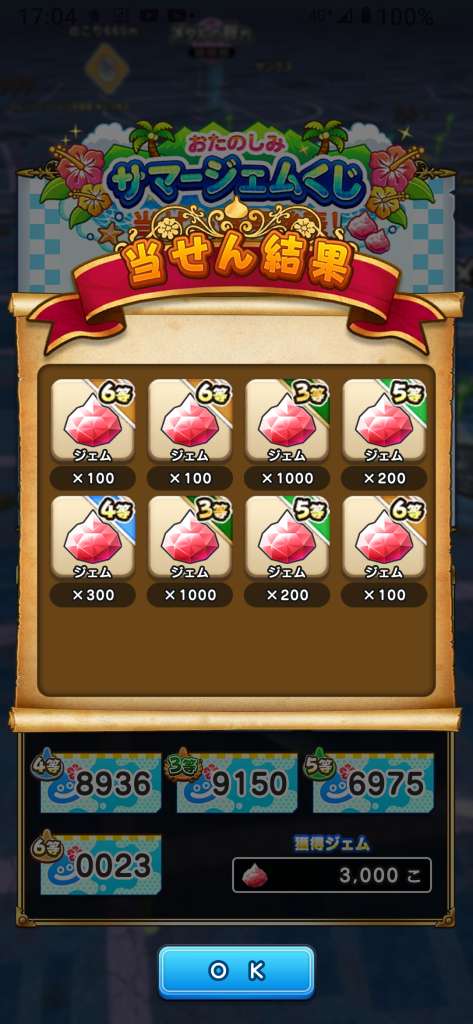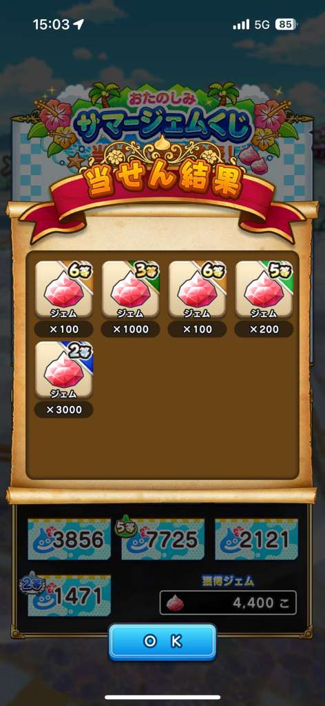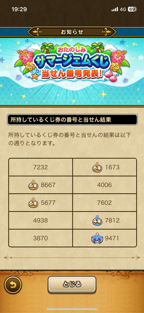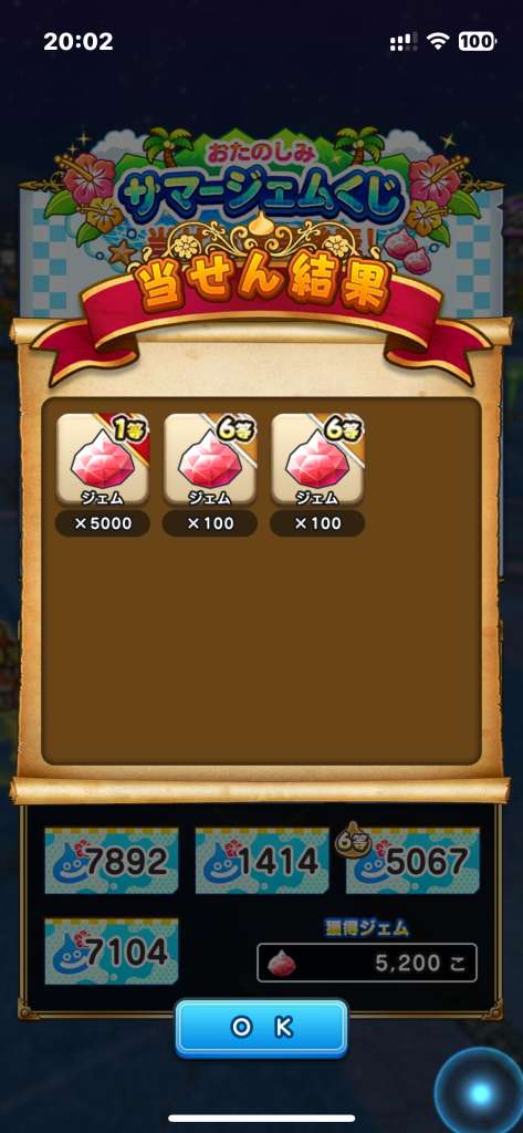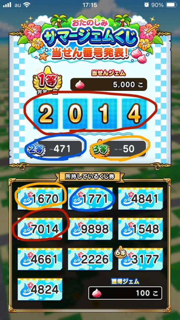 最高4等だったけど、5等と6等が複数当たって合計1000ジェムぐらい貰えてて結構当たりの部類だったのか。もっと配ればいいのに。
