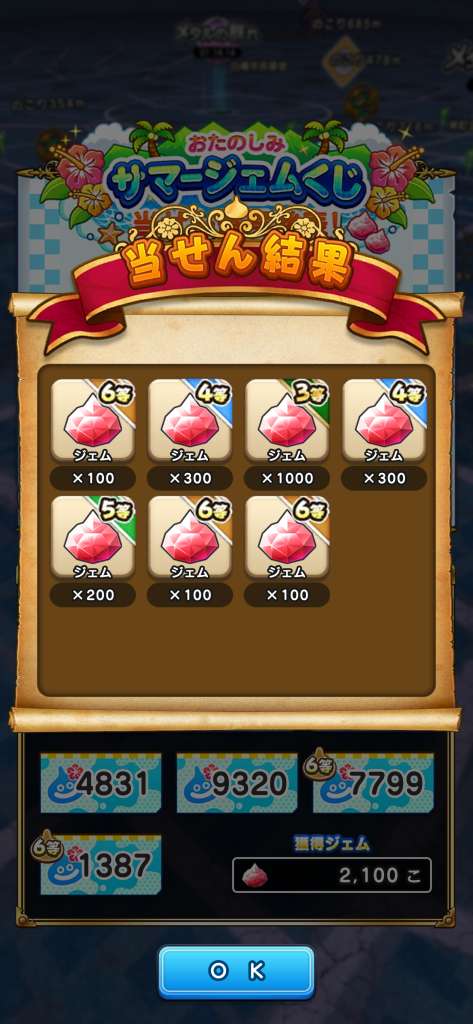 合計500ジェムくらい当たれば良い方じゃないかなって達観してる