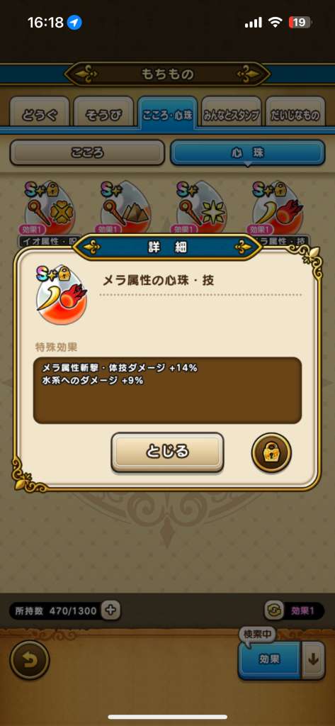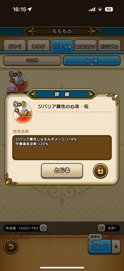 ドラクエウォークの「心珠」のS+/Sランク時の特殊効果や確率を一覧でまとめています。心珠の法則やAランク以上の限定効果、おすすめ当たり効果も掲載中。