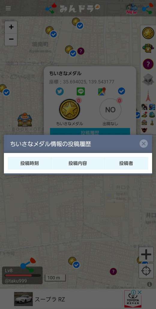 ちいさなメダルはツボから入手できます。位置は全ユーザー同じです。条件を満たすとツボが光り、メダルが入ったツボが目に見えるようになる仕組みです。