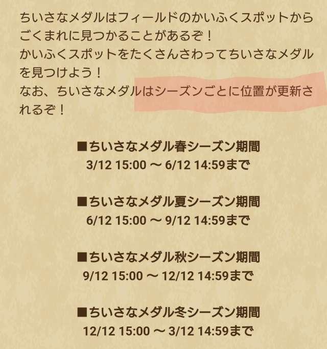 ちいさなメダル入手方法