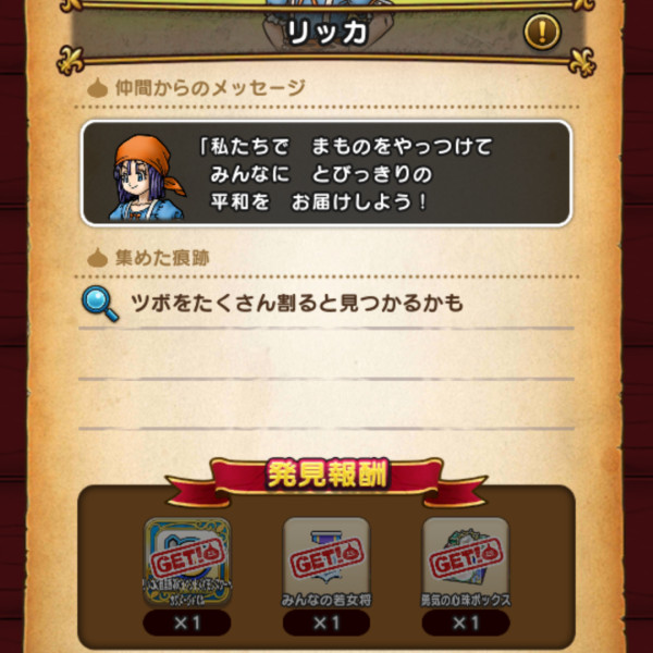 「ちいさなメダル」を集めると、リッカの宿屋で報酬が受け取れます。宿屋まで実際に行く必要があります。