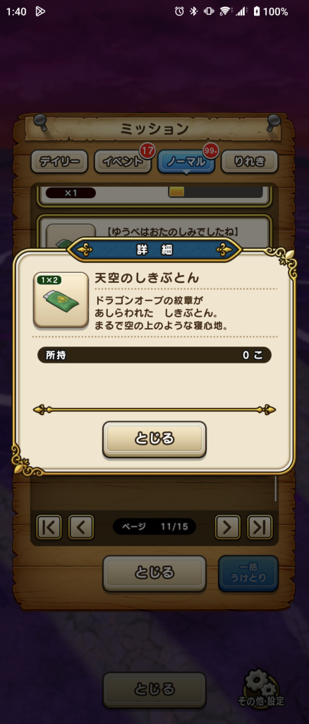 寝るのを忘れた日があると、10日のカウントに入らず、その日は飛ばされるようになった。4日はおやすむを忘れても10日間フルの夢冒険ができる。