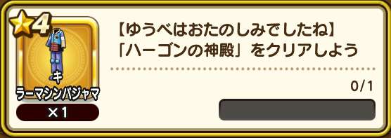| 竜王の城クリア | ★4「ゴーレムパジャマ」×1 |