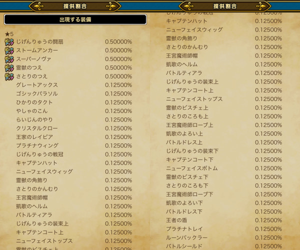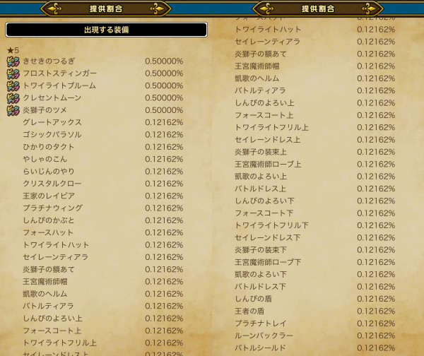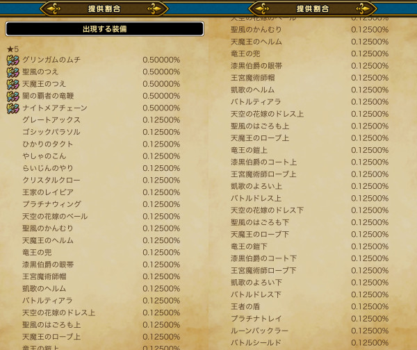 ![]() アリアハンの心珠 | ![]() 回復武器一覧 | ![]() 呪文UP・魔力比較 | ![]() ぶき錬成一覧 |