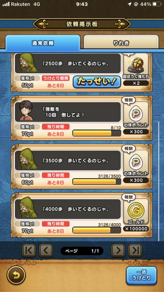 | 8000歩歩く | ゴールドの珠×1 |