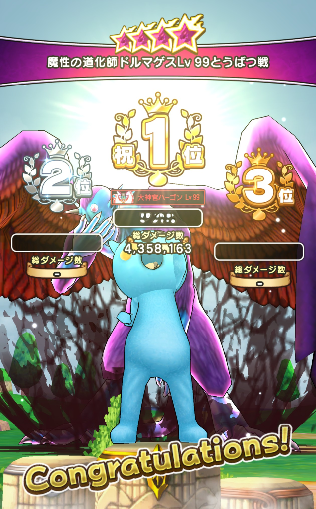 1ターン目にアトラスがハーゴンをかばって、3ターン目にすてみ攻撃で自決するので、通常4ターン目からこちらの攻撃ターンになるため、4ターン目までにバフを入れる攻略が主流。