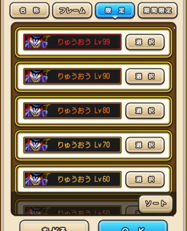 ![]() 闇の覇者 りゅうおうLv99 | ![]() 究極進化 エビプリLv99 | ![]() 魔王 バラモスLv99 | ![]() 暴嵐天 バリゲーンLv99 |