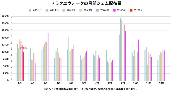 月間ジェム配布量(みんドラ調べ)