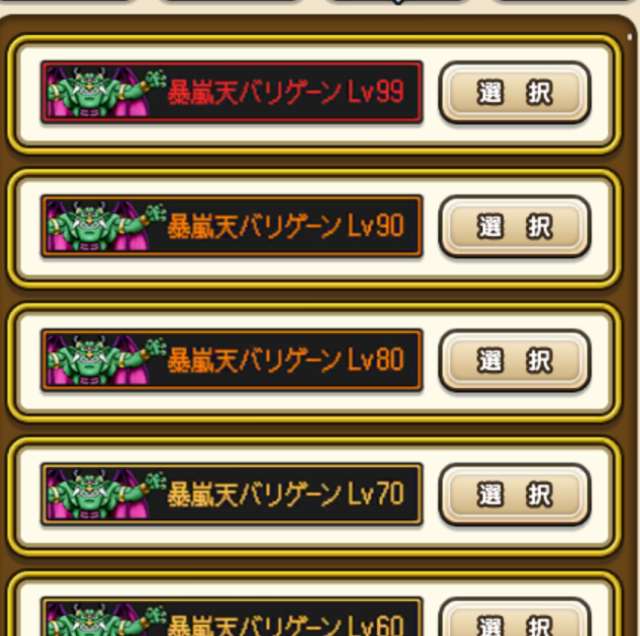 ![]() 闇の覇者 りゅうおうLv99 | ![]() 究極進化 エビプリLv99 | ![]() 魔王 バラモスLv99 | ![]() 暴嵐天 バリゲーンLv99 |