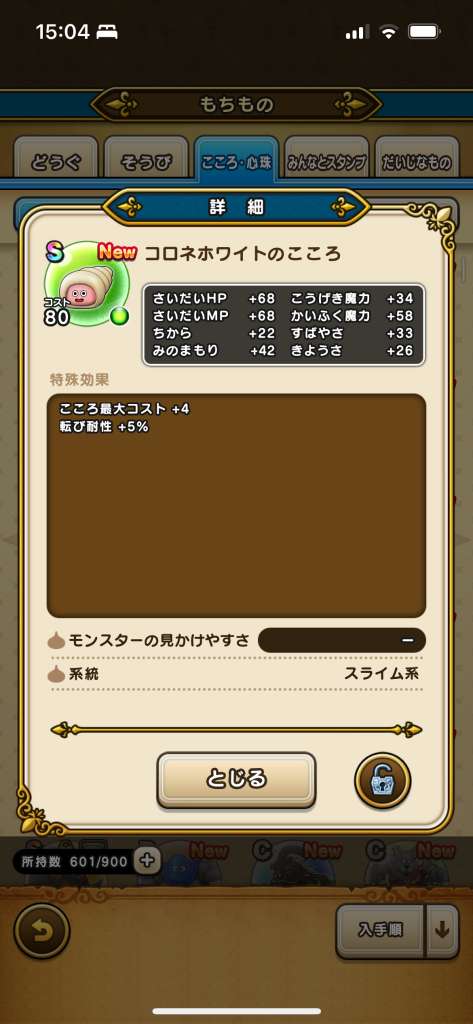 ドラクエウォークの「コロネホワイトのこころ」の性能・ステータス順位、必要個数を掲載!心珠ポイントへの交換効率や出現場所などもまとめていますので参考にしてください。