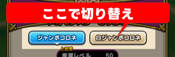 白、黒のジャンボコロネは、挑戦画面のタブで切り替えが可能です。手形は共通となります。