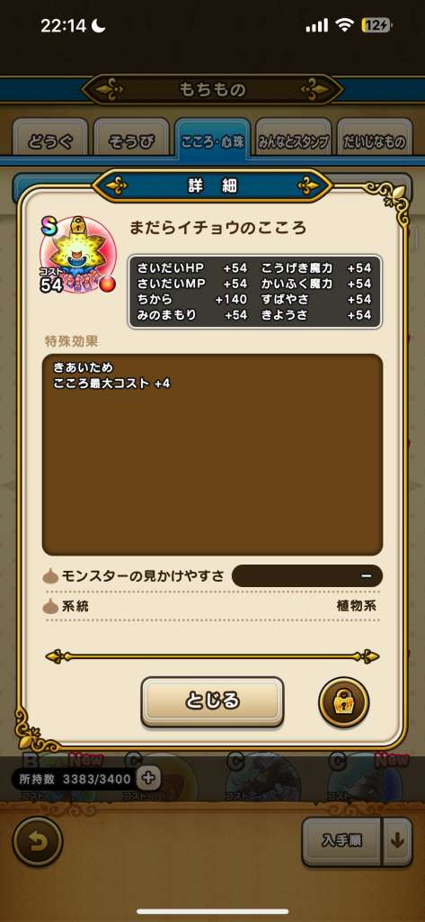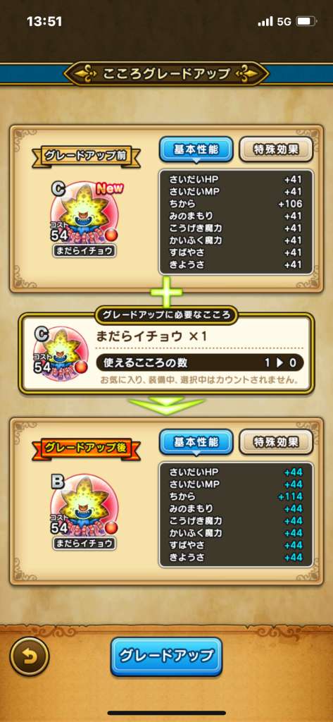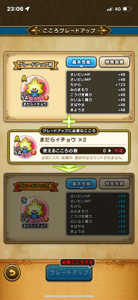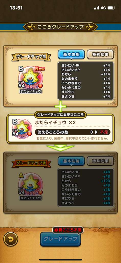 ドラクエウォークの「まだらイチョウのこころ」の性能・ステータス順位、必要個数を掲載!心珠ポイントへの交換効率や出現場所などもまとめていますので参考にしてください。