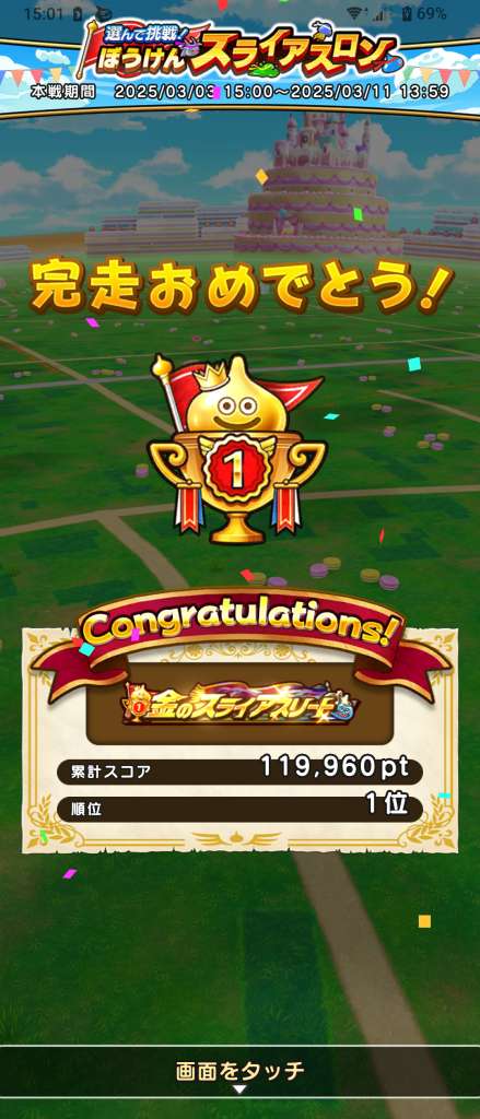 総合7位。今回Sは一個も出ず。経験値S狙ってたけど残念無念。経験値Aは追加で4個ゲットして合計8個になりました。前回はS3(ゴールド2、経験値1)だったから期待してたのになー。悔しい。