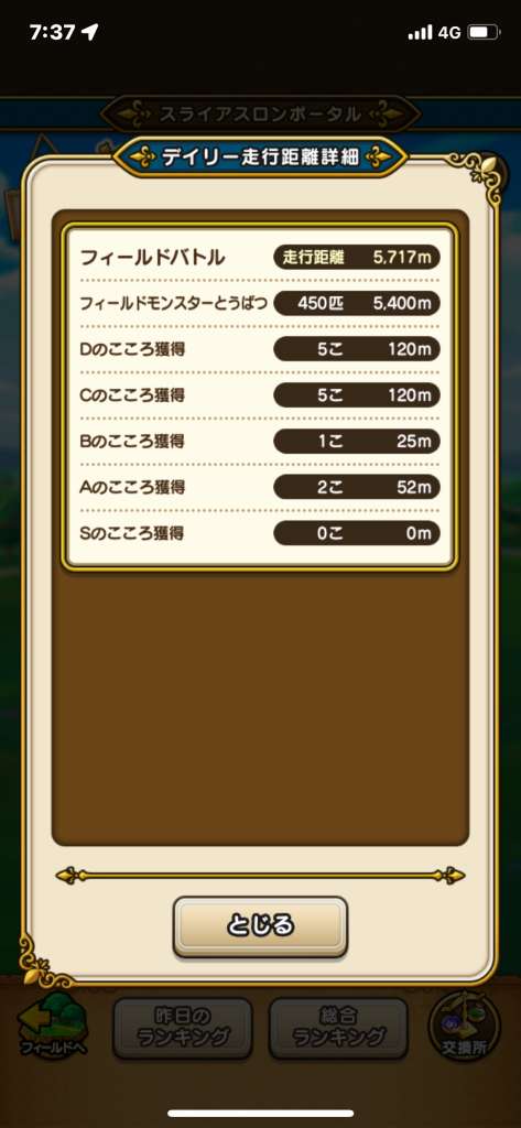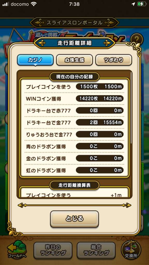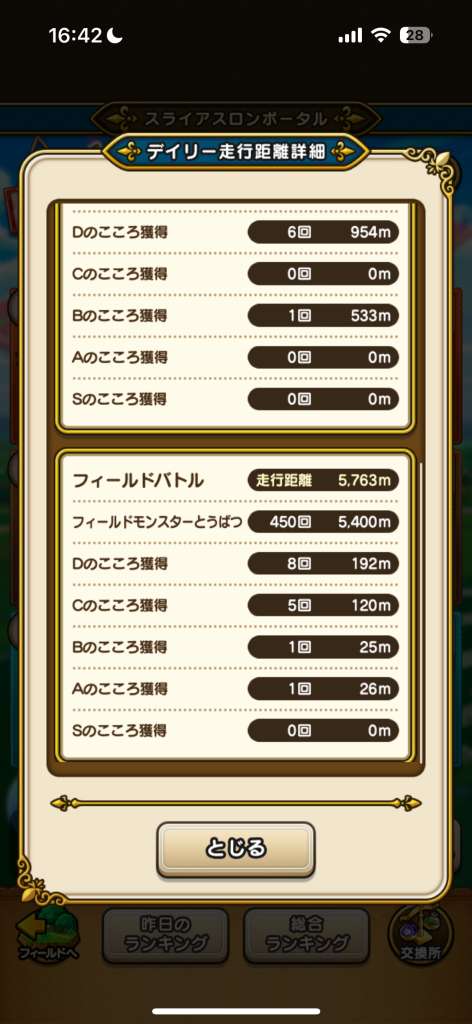 ドラクエウォークのスライアスロンの「走行距離詳細」の記録を利用した、こころのドロップ率や心珠の生成率を集計しまとめています。