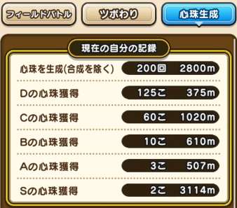 | ※合成で生成された心珠 ※200個を超えて生成された心珠 (まとめて生成した場合は生成順200個以内がカウント対象) |