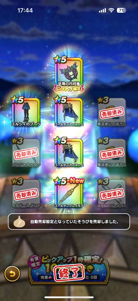 (0回/1回)![]() レジェンドホース 終了明記なし | 制限(1回)![]() ダークトロル 終了明記なし | 制限(1回)![]() ラゴンヌ 終了明記なし | 制限(1回)![]() ごくらくちょう 12/11(木)終了 |