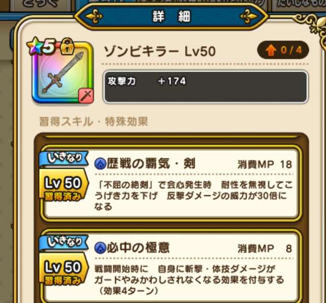 今朝のエスターク(自分は並)からゾンビキラーの会心攻撃減が入りにくくなった。