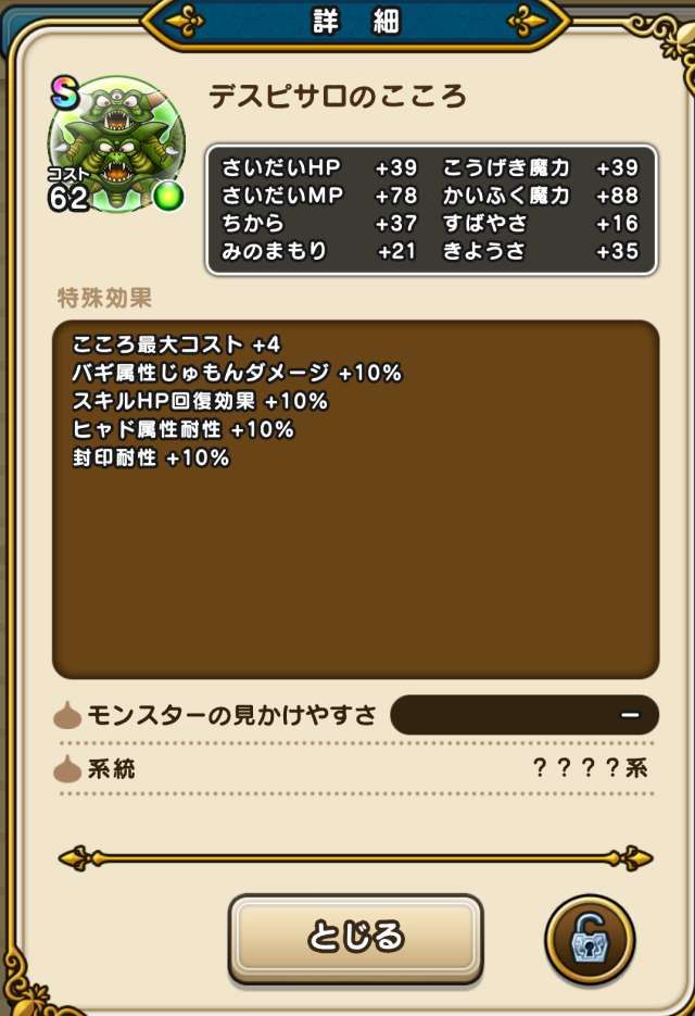 地獄の帝王エスターク(覚醒)のこころSの性能と必要個数