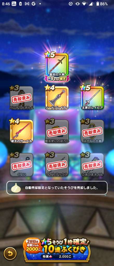 二刀流でエスタークの魔刃2本装備すると左と右で必中会心・絶4回使えるとかなら2本目狙いに行ったんだがなぁ
