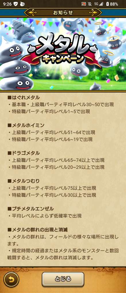 フィールド上に「メタルの群れ」が出現。「プチメタルエンゼル」も出てきます。やることは普通のメタルキャンペーンと同じ。詳細はリンク先をご覧ください↓