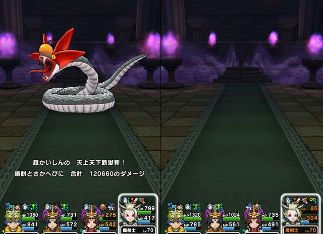 エスタークの魔刃は使わず、異界の捕食者パーティの防具頭をドラゴン耐性に変えて、仲間モンスターをドラゴンにして倒しました。
