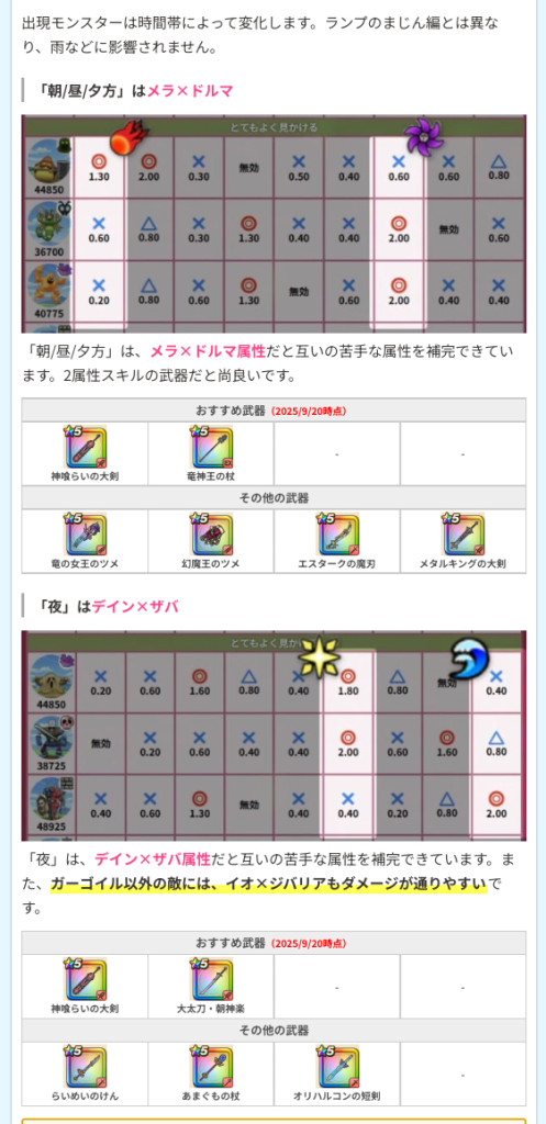 弱点耐性早見表
